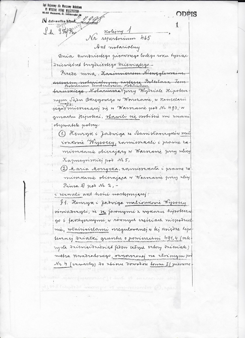 Warszawska nieruchomość Marymoncka 49 została zakupiona w lutym 1939r. przez Bronisławę Morzycką-Chałupczyńską dla jej córki, Marii Morzyckiej. Kamienica była nowo wybudowana i wydawała się bardzo dobrą inwestycją zabezpieczającą finansową przyszłość rodziny. Nikt nie zdawał sobie sprawy, że tuż za progiem czyha wydarzenie, które nie tylko tragicznie zmieni losy świata, ale i losy rodziny Morzyckich.