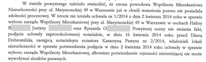 (Cały wyrok wraz z uzasadnieniem znajduje się w artykule Nielegalny Zarząd: lokatorzy komunalni przejęli zarządzanie i finanse Wspólnoty)