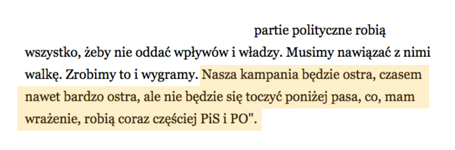 Najbardziej jednak spektakularnym przykładem jego hipokryzji przedwyborczej w świetle późniejszych działań, opartych na kopaniu niewinnych, jest ta oto wypowiedź programowa: