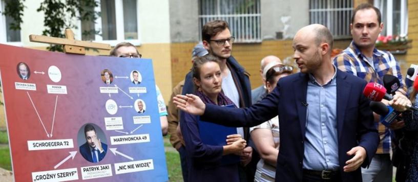 Ale, gdy dokładnie tydzień później, 16 lipca 2018r., w czasie swojej pierwszej oficjalnej konferencji prasowej jako kandydat na prezydenta, która odbyła się na podwórku kamienicy przy ul. Marymonckiej 49, zaatakował Jakiego i Komisję do Spraw Reprywatyzacji, to postawił się wyraźnie po jednej ze stron.