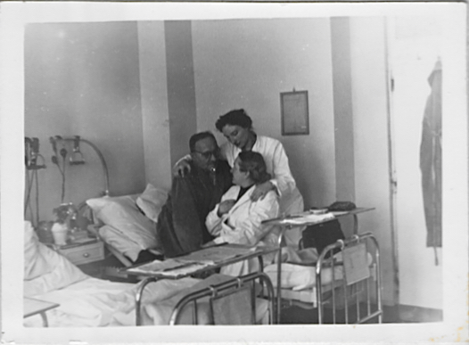 Do Polski z zesłania Bruno wrócił schorowany, etapami, dopiero 1958r. – i trafił do prosto do szpitala w Warszawie, na Wołowską, dokładnie tego, w którym jego najmłodsza córka, Ewa Morzycka-Szajer, właśnie urodziła córeczkę, Marię. Dziadek Bruno był wedle rodzinnej legendy pierwszym członkiem rodziny, który trzymał małą Marysię na rękach… Na zdjęciu poniżej zrobionym w szpitalu w marcu 1958r. widać od lewej Brunona Mora Morzyckiego, wpatrującego się w odzyskaną żonę, Stanisławę, a między rodzicami – “świeżo upieczona matka”, Ewa Morzycka-Szajer.